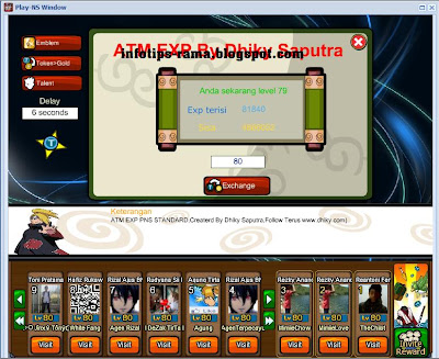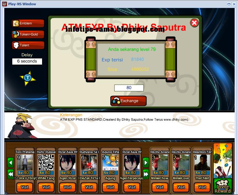 NB: Cheat Leveling PNS/NSX WORK atau Cheat ATM EXP PNS/NSX ini masih work. Barusan saya coba ^_^
